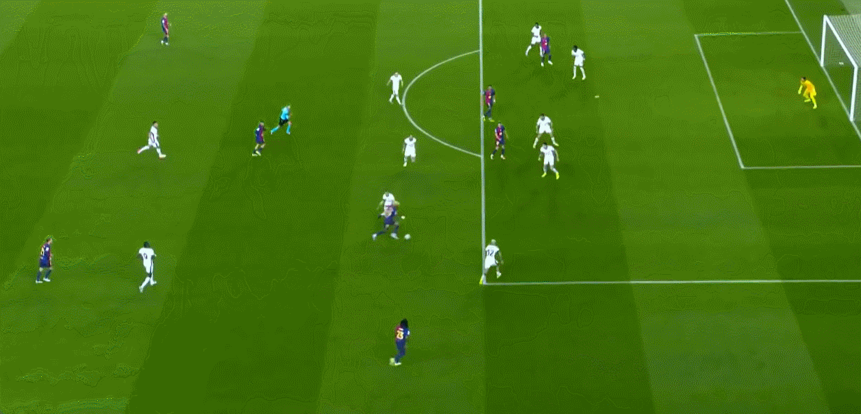 北京时间5月1日凌晨进行的欧冠半决赛首回合比赛,巴萨对阵国际米兰,比赛第24分钟,亚马尔前场转身摆脱图拉姆后,一条龙突入禁区,左脚兜出完美弧线,皮球击中立柱后入网。
